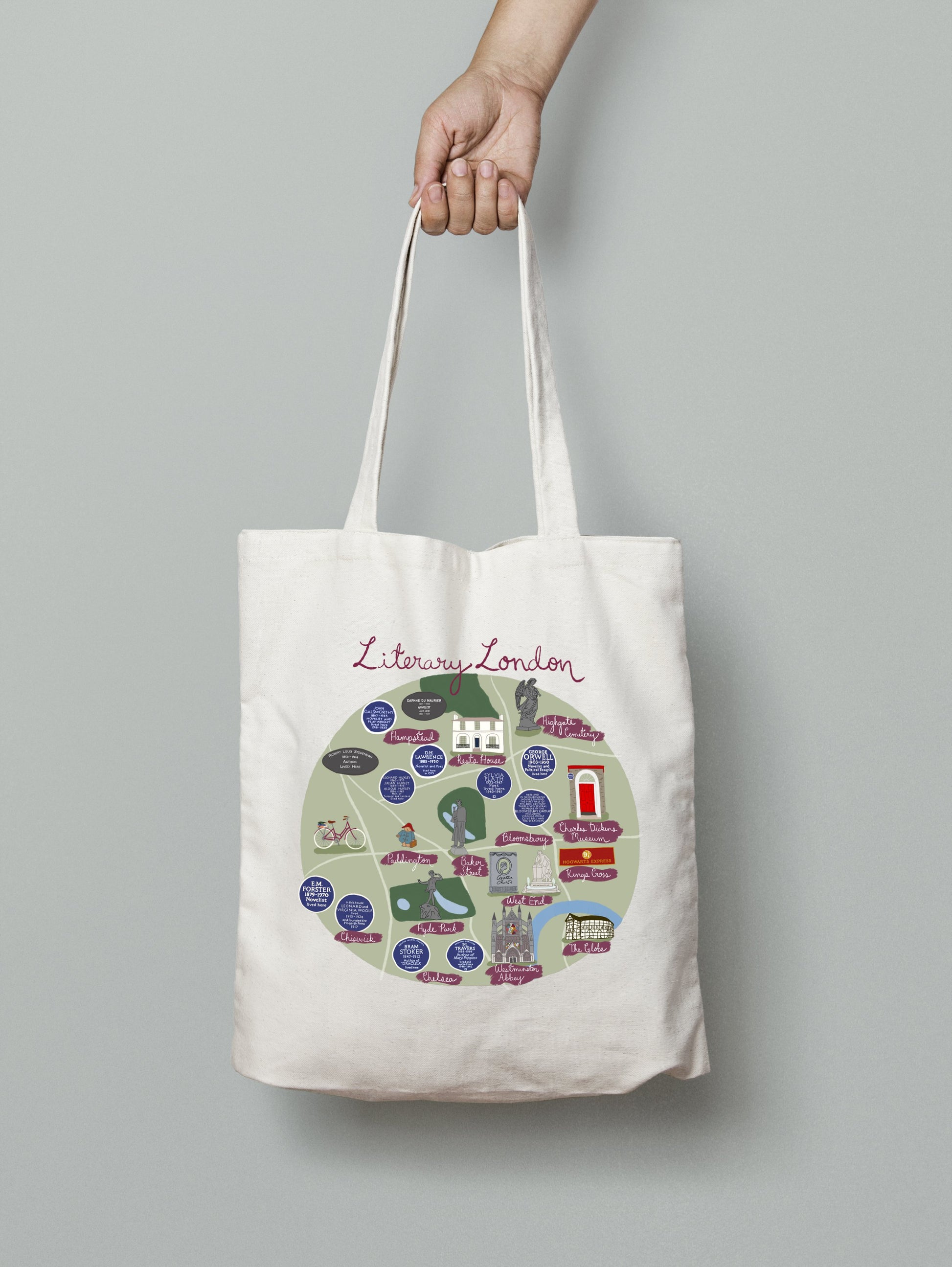 This 100% organic cotton tote bag is soft, sturdy, and makes the perfect companion for running errands, farmers markets,  trips to the bakery, and everything in between. London has influenced writers for centuries. When I am out walking I love noticing the plaques that commemorate them. I love thinking about PL Travers walking down Kings Road, Virginia Woolf meeting up with friends in Bloomsbury, and Shakespeare crossing London Bridge to get to the Globe Theatre. The places we live influence who we are and I created this map to celebrate the authors who called London their home.Material: 100% organic brushed cotton canvas.Control Union certified cotton.Premium heavyweight fabric.Carry/shoulder straps (63cm long).Please note, these bags are printed on demand and can take 5-10 business days to ship*
