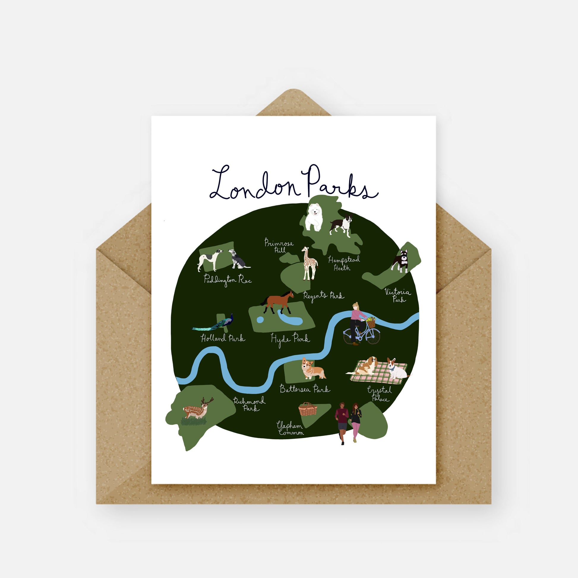 The perfect card to send to your favourite person. The Interior of the card is blank. The most beautiful parks to take a walk in or enjoy a picnic. Can you visit all the parks on this map? Kid friendly and pet friendly activities at any park!