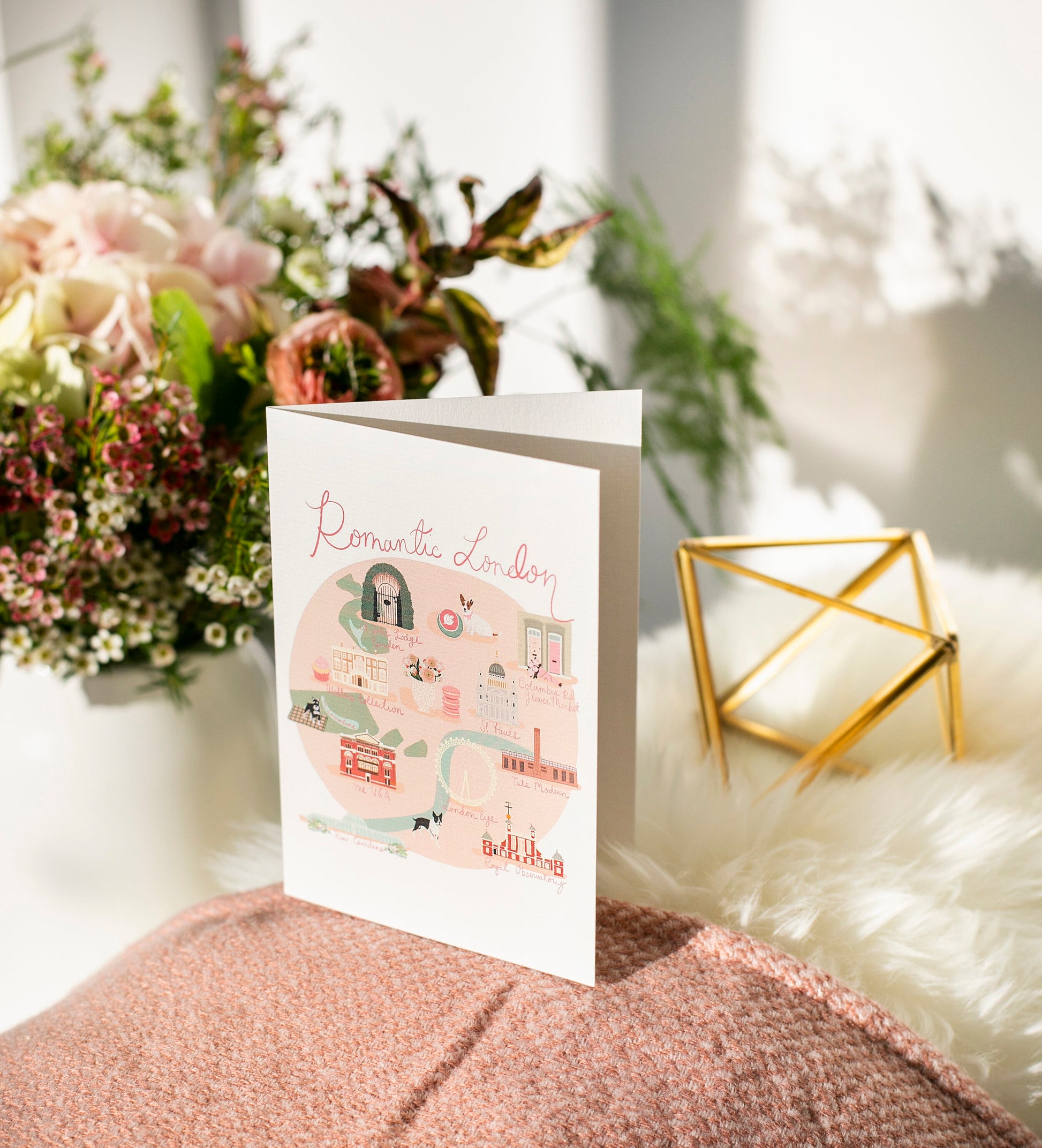 The perfect card to send to your friends or loved ones. The Interior of the card is blank. From London museums to pretty cafes, getaway to the most romantic corners of London. Perfect gift for an Anniversary or Valentine’s Day.