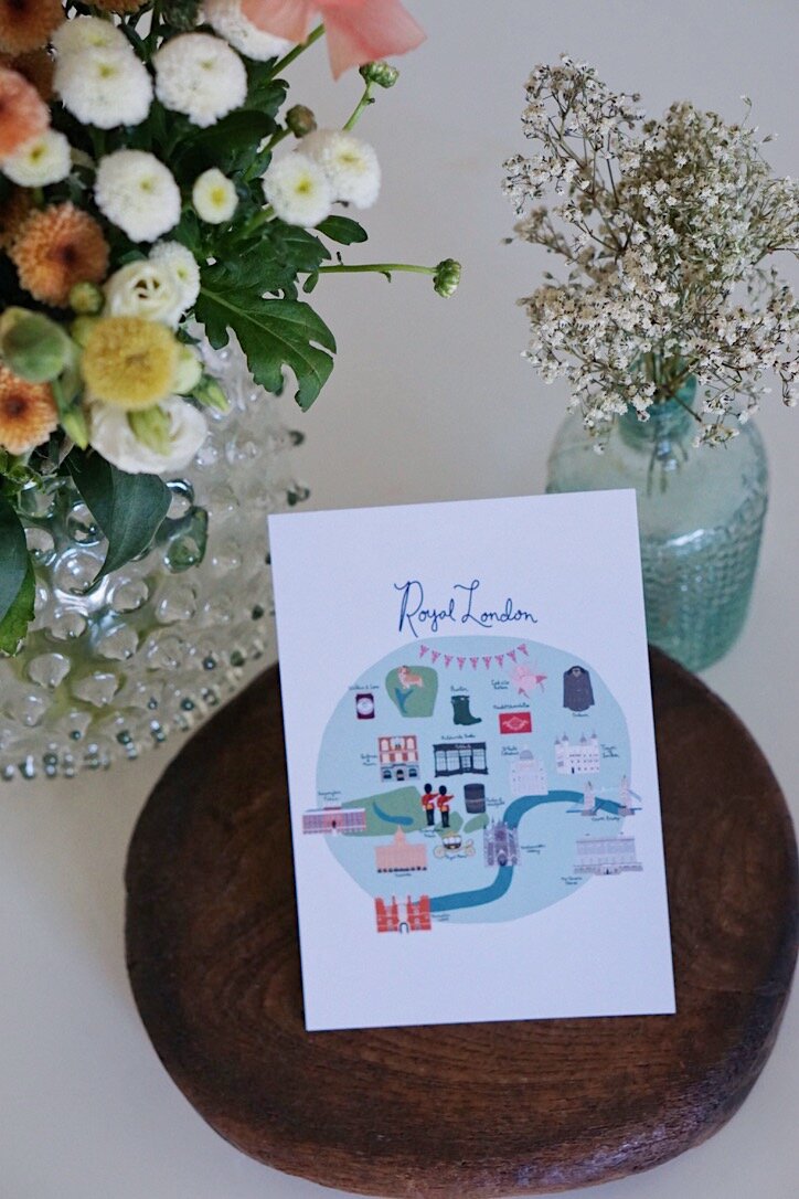 The perfect card to send to your favourite person. The Interior of the card is blank. All things royal in London! The all-inclusive map of Royal Residencies and favourites of the Royal Family. Including The Queen’s go-to rain boots and chocolates.